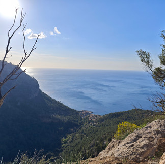Am Dienstag startete der Tag mit Ernestos Frühstück. Omelett, Salami, Käse, Avocado, Tomaten, Brot & Kaffee. Gemütlich auf der Couch im Gemeinschaftsbereich. Herrlich! Danach gab es noch einen Schluck Kaffee im Garten zusammen mit einer Kuscheleinheit von Bienvenida und seinen beiden Katzen. Lieben wir doch! Auf dem Tagesplan stand ein Besuch in Sòller. Nach einem Rundgang durch die kleinen süßen Gassen haben wir es uns bei herrlichem Sonnenschein und einem Kaffee am Placa de la Constitucio gemütlich gemacht und das bunte Treiben auf uns wirken lassen. Ein Besuch in Sòller lohnt sich wirklich. Anschließend haben wir uns mit der Tram für 10€ p.P. (eine Fahrt) auf den Weg zum Hafen gemacht. Die Tickets kauft man ganz unkompliziert bei einem Schaffner, der in der Tram umhergeht. Die Tranvía de Sòller ist tatsächlich eine von zwei Straßenbahnen der ersten Generation, die in Spanien noch erhalten sind. Die Fahrt war wirklich schön, aber für den Rückweg war uns der Spaß dann doch keine 10€ wert. Am Hafen haben wir das türkisblaue Wasser und die Meeresluft bei dos bolas Eis sehr genossen. Da um diese Jahreszeit noch nicht viel los war, war es ein sehr schöner Ausflug. Ich könnte mir aber vorstellen, dass es in der Hochsaison überlaufen und gar nicht mehr so schön ist. Nach einem Spaziergang zurück zum Auto ging es dann zu den Jardins d’Alfàbia. Blauer Himmel, duftende Orangenbäume, eine Vielzahl verschiedenster Pflanzen, ein historisches Herrenhaus und alles umgeben von Bergen. Eine absolute Ruheoase, die auf jeden Fall einen Besuch wert ist. Und dann ging das Abenteuer erst richtig los. Wir fuhren zum Aussichtspunkt Mirador de es Colomer. Die Fahrt war schon schön, aber oben angekommen, wurden wir mit einer wirklich spektakulären Aussicht belohnt. Und weil wir kleine Schisser sind, hat´s ganz doll gekribbelt, als wir aus schwindelerregender Höhe runter auf das Meer geschaut haben. Die Aussicht war einfach unfassbar und die ganze Szene war in die orangefarbene Abendsonne getaucht. Ein wunderschöner Moment, in dem wir uns mal ganz fest umarmen mussten und einfach nur dankbar waren. Da stehen wir also, ganz weit oben, beste Aussicht, Arm in Arm und um uns herum hüpfen Ziegen. Besser geht's doch kaum. Anschließend gab es eine Pizza zum Abendessen in Alcudia.