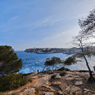 Zum Mittagessen sind wir dann ins Cassai gefahren. Süße Location mit leckerem Essen. Gut gestärkt ging es dann weiter zur Bucht Caló de Moro im Südosten der Insel. Die Aussicht ist fantastisch und das Meer peitscht an die Klippen. Wir schießen ein paar Fotos und genießen dann einfach nur den Moment. Von der Straße aus geht man gefühlt nie endend wollende Treppenstufen (sehr steil und beängstigend) zur Bucht, aber es lohnt sich. Als wir wieder oben sind, haben wir unser Workout dann gleich mit erledigt. Toll! Danach hat es uns zur Aussichtsplattform Mirador de Pontàs getrieben. Auch hier war die Aussicht wieder unglaublich und da es in der Zwischenzeit schon Abend geworden ist, taucht die Abendsonne alles in ein oranges Licht. Traumhaft schön. Jetzt können wir müde und glücklich zur Unterkunft fahren und uns ins Bett fallen. Ein Tag voller Aussichten.
